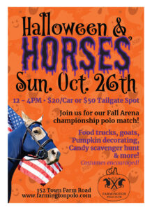 Guaranteed to be a spooktacular day of fall fun and exciting arena polo! Costumes encouraged!